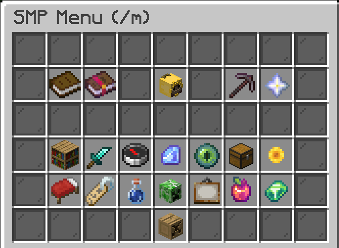 The SMP menu, formally the help menu, aims to provide an overview of a large amount of SMP features and server information for quick access, intended to be especially helpful for new members.